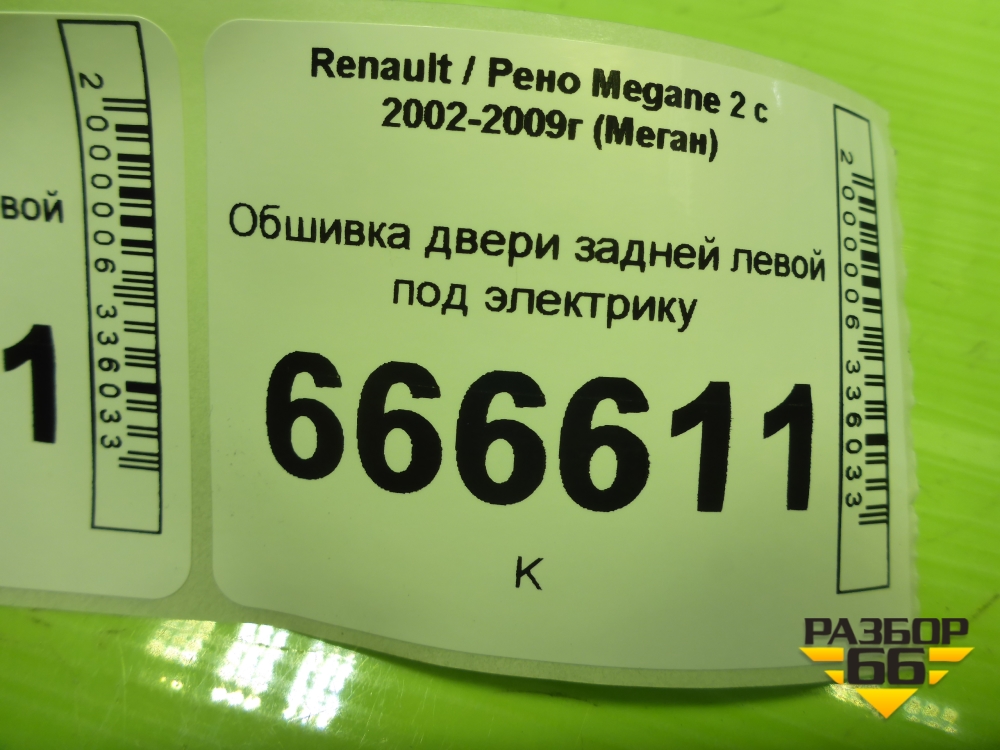 Обшивка двери задней левой под электрику (со шторкой седан) (156016642) для Renault Megane 2 с 2002-2009г (Меган) в Уфе