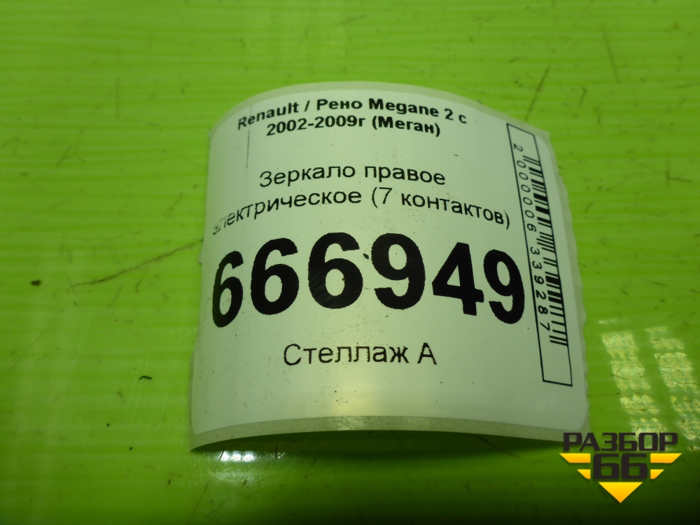 Зеркало правое электрическое (7 контактов) для Renault Megane 2 с 2002-2009г (Меган) в Уфе