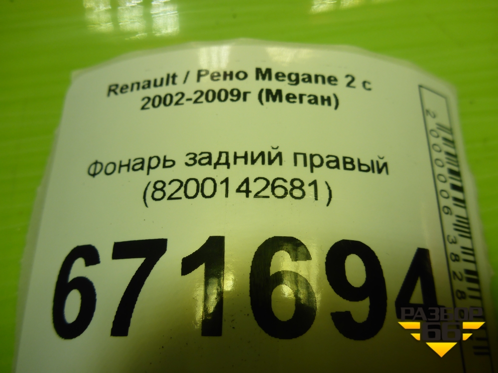 Фонарь задний правый (8200142681) для Renault Megane 2 с 2002-2009г (Меган) в Уфе