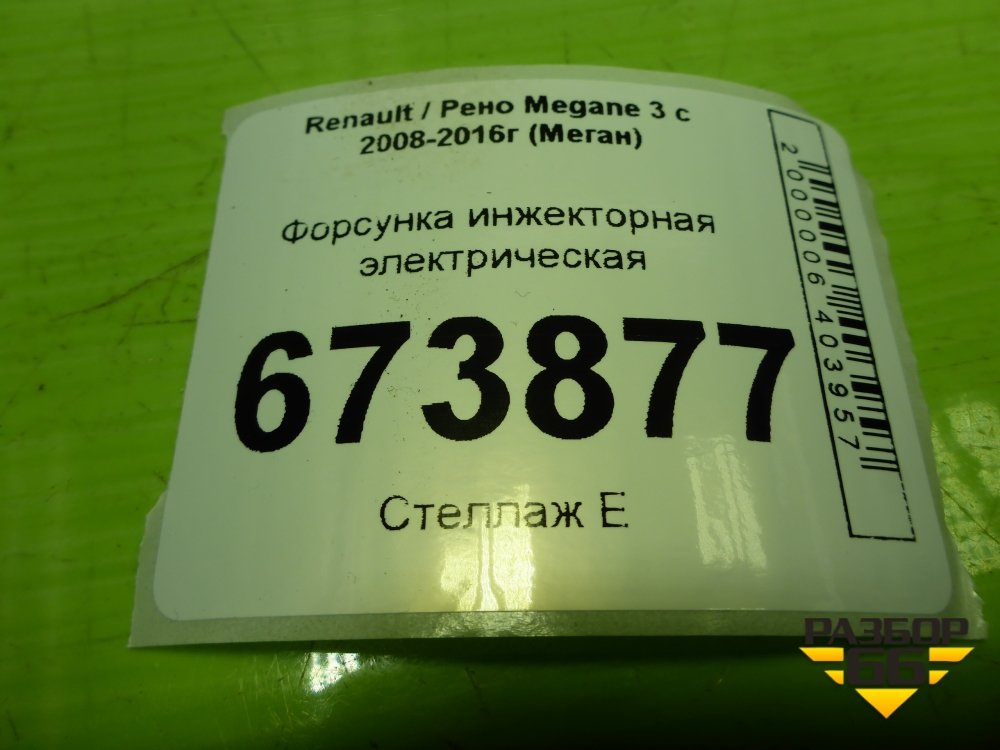 Форсунка инжекторная электрическая (1.6л K4MV838) (H132259) для Renault Megane 3 с 2008-2016г (Меган) в Уфе