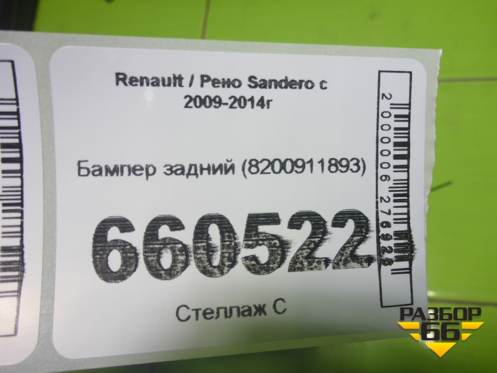 Бампер задний (8200911893) для Renault Sandero с 2009-2014г (Сандеро) в Уфе