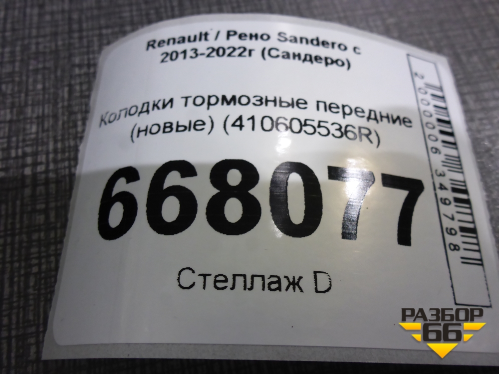 Колодки тормозные передние (новые) (410605536R) для Renault Sandero с 2013-2022г (Сандеро) в Уфе