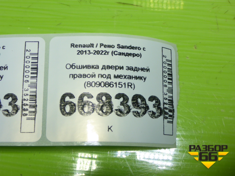 Обшивка двери задней правой под механику (809086151R) для Renault Sandero с 2013-2022г (Сандеро) в Уфе