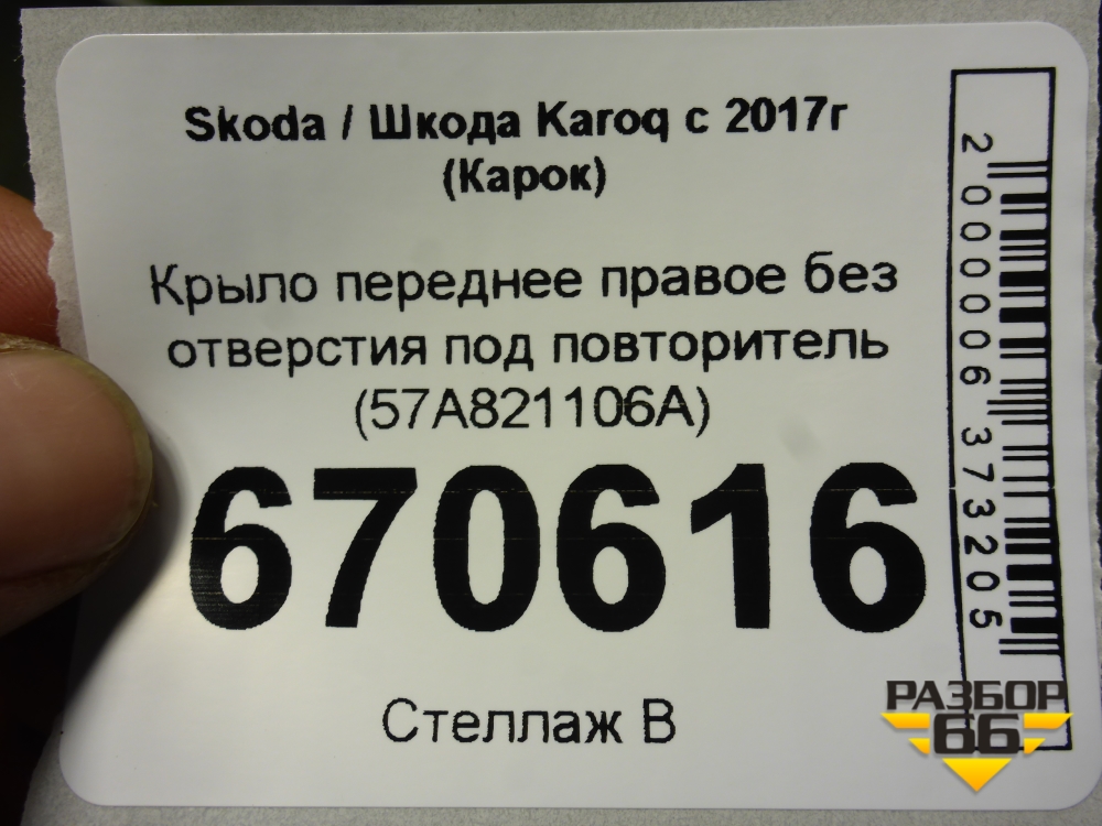 Крыло переднее правое без отверстия под повторитель (57A821106A) для Skoda Karoq с 2017г (Карок) в Уфе