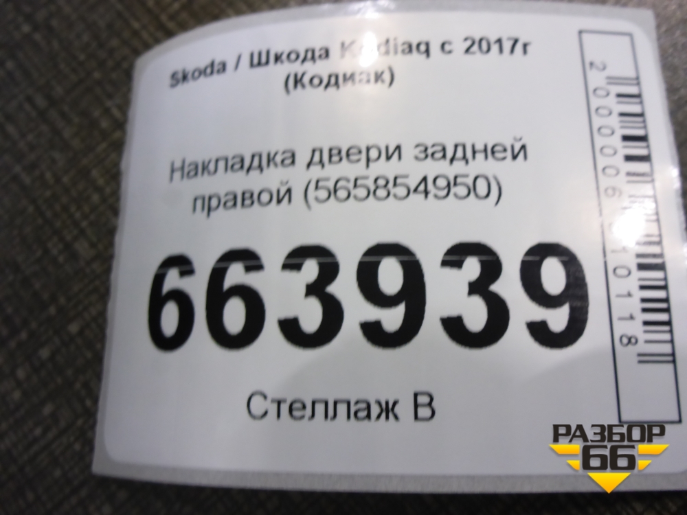 Накладка двери задней правой (565854950) для Skoda Kodiaq с 2017г (Кодиак) в Уфе