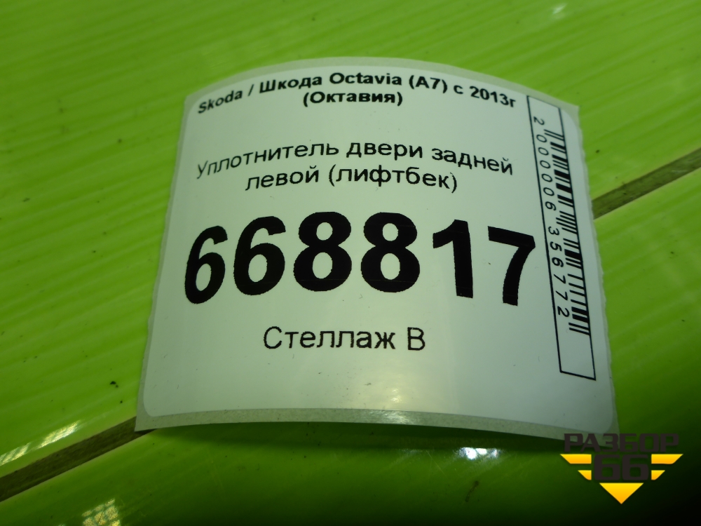 Уплотнитель двери задней левой (лифтбек) (5E5867367F) для Skoda Octavia (A7) с 2013г (Октавия) в Уфе