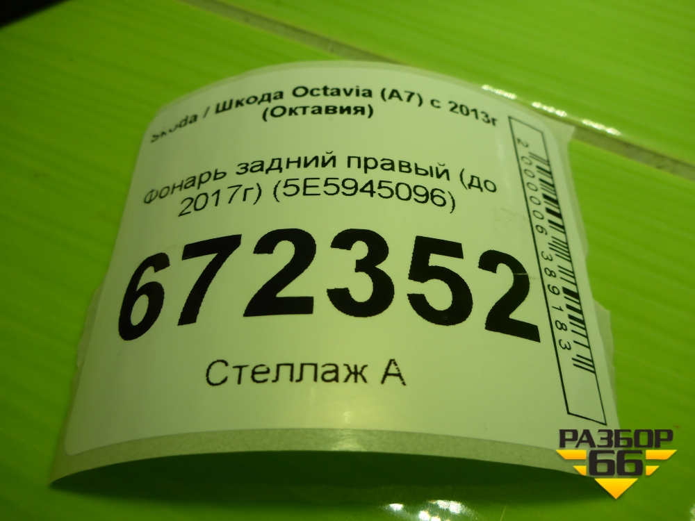 Фонарь задний правый (до 2017г) (5E5945096) для Skoda Octavia (A7) с 2013г (Октавия) в Уфе