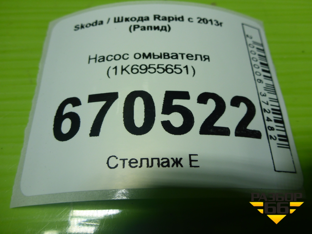 Насос омывателя (1K6955651) для Skoda Rapid с 2013г (Рапид) в Уфе