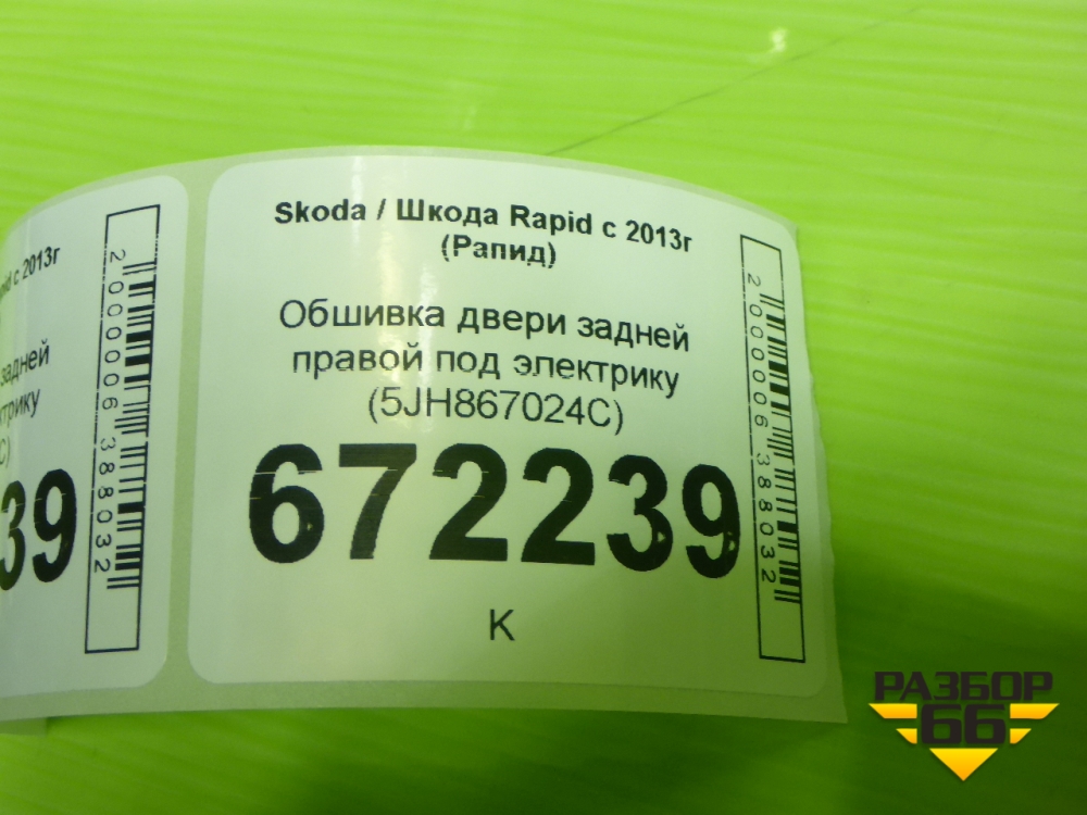 Обшивка двери задней правой под электрику (5JH867024C) для Skoda Rapid с 2013г (Рапид) в Уфе