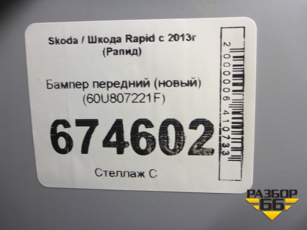Бампер передний (новый) (60U807221F) для Skoda Rapid с 2013г (Рапид) в Уфе
