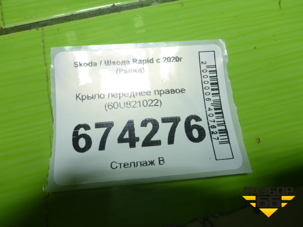 Крыло переднее правое (60U821022) для Skoda Rapid с 2020г (Рапид) в Уфе