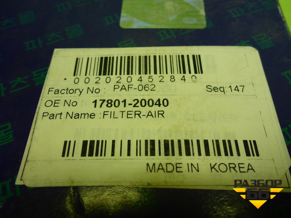 Фильтр воздушный (PAF062) для Toyota Camry V40 с 2006-2011г (Камри) в Уфе