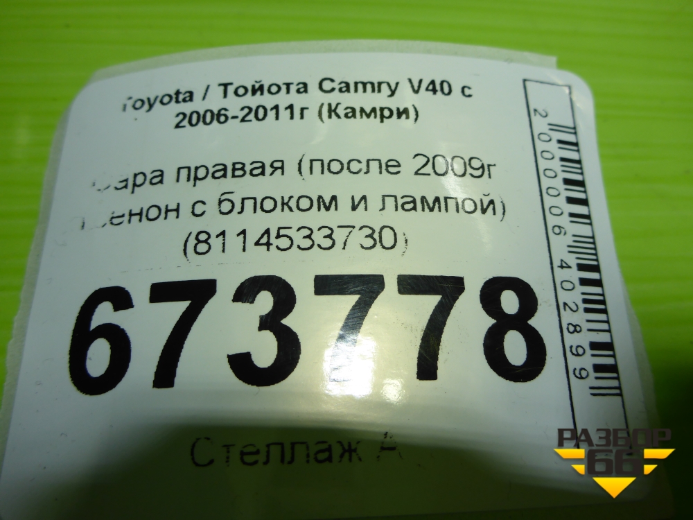 Фара правая (после 2009г ксенон с блоком и лампой) (8114533730) для Toyota Camry V40 с 2006-2011г (Камри) в Уфе