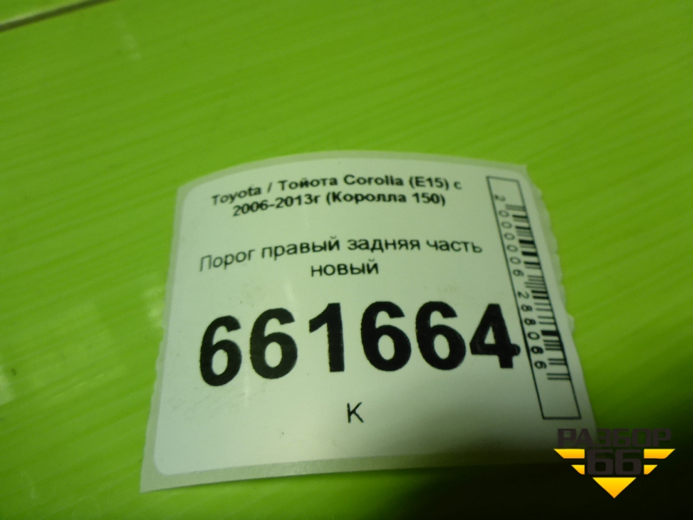 Порог правый задняя часть новый для Toyota Corolla (E15) с 2006-2013г (Королла 150) в Уфе