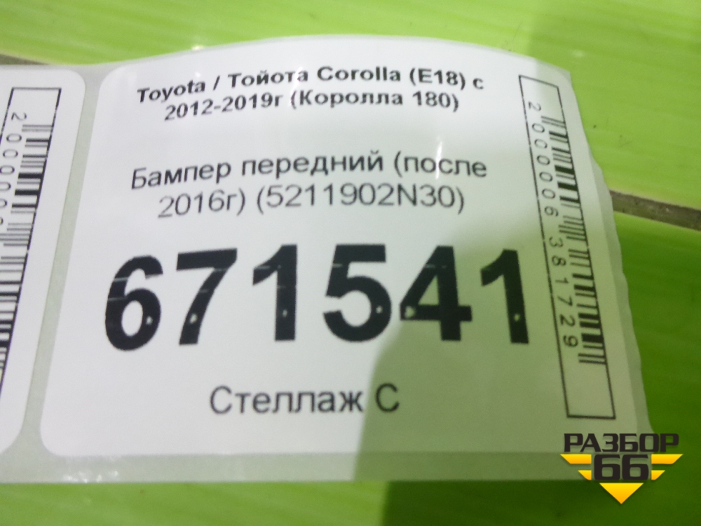 Бампер передний (после 2016г) (5211902N30) для Toyota Corolla (E18) с 2012-2019г (Королла 180) в Уфе