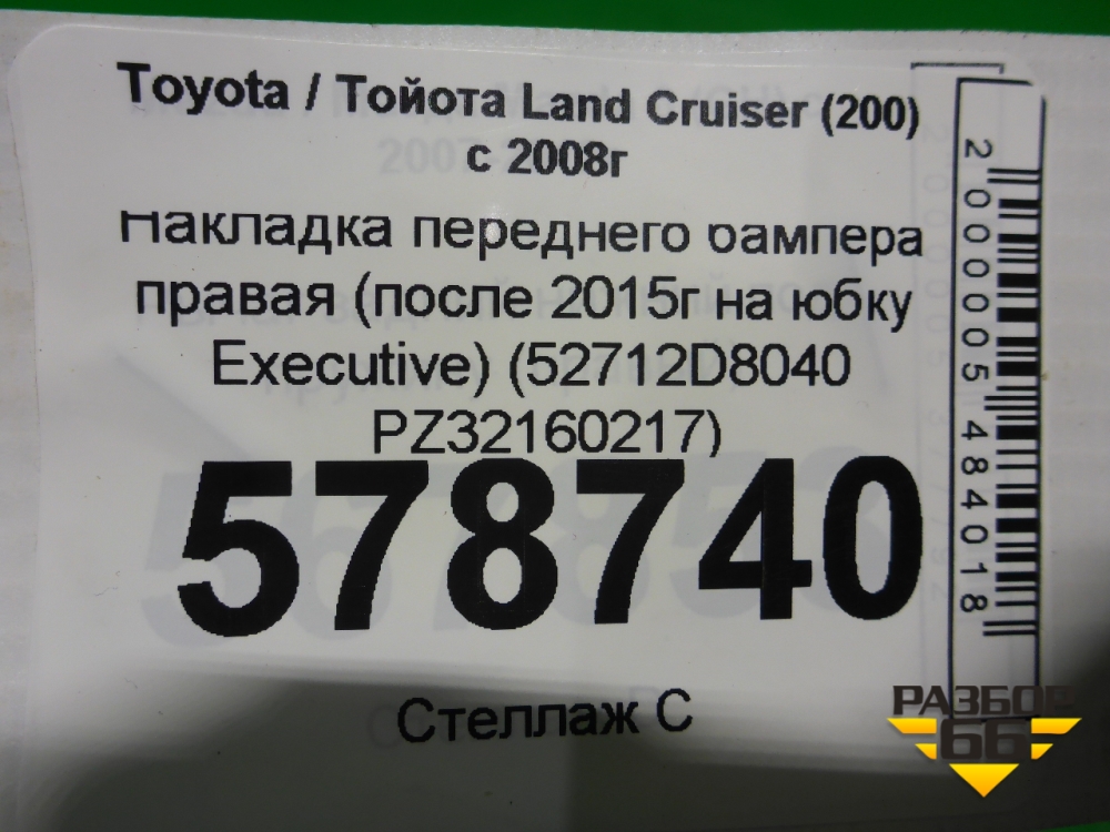 Накладка переднего бампера правая (после 2015г на юбку Executive) (52712D8040 PZ32160217) для Toyota Land Cruiser (200) с 2008г (Ленд Крузер) в Уфе