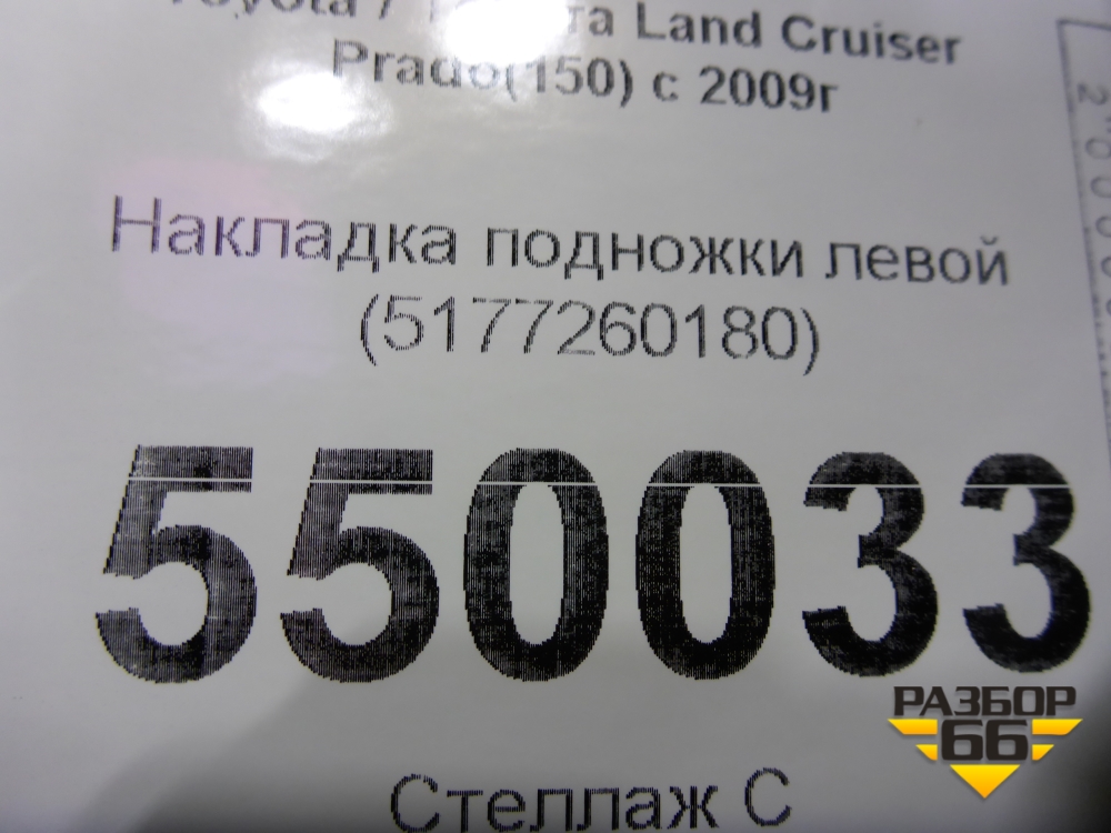 Накладка подножки левой (5177260180) для Toyota Land Cruiser Prado(150) с 2009г (Ленд Крузер Прадо) в Уфе