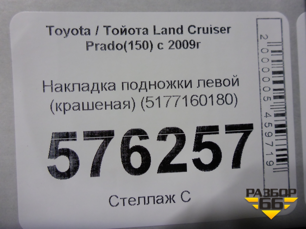 Накладка подножки левой (крашеная) (5177160180) для Toyota Land Cruiser Prado(150) с 2009г (Ленд Крузер Прадо) в Уфе
