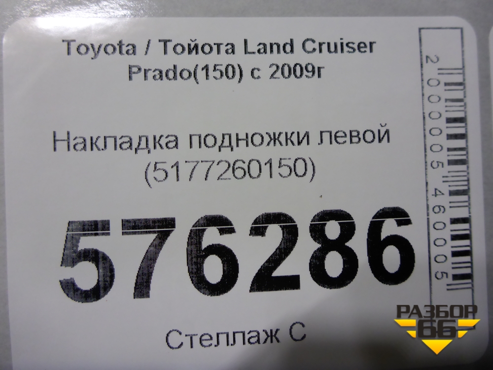 Накладка подножки левой (5177260150) для Toyota Land Cruiser Prado(150) с 2009г (Ленд Крузер Прадо) в Уфе