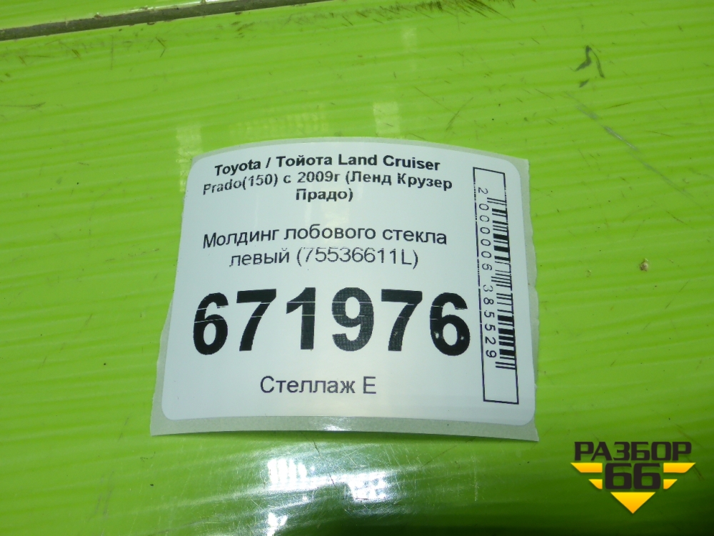 Молдинг лобового стекла левый (75536611L) для Toyota Land Cruiser Prado(150) с 2009г (Ленд Крузер Прадо) в Уфе