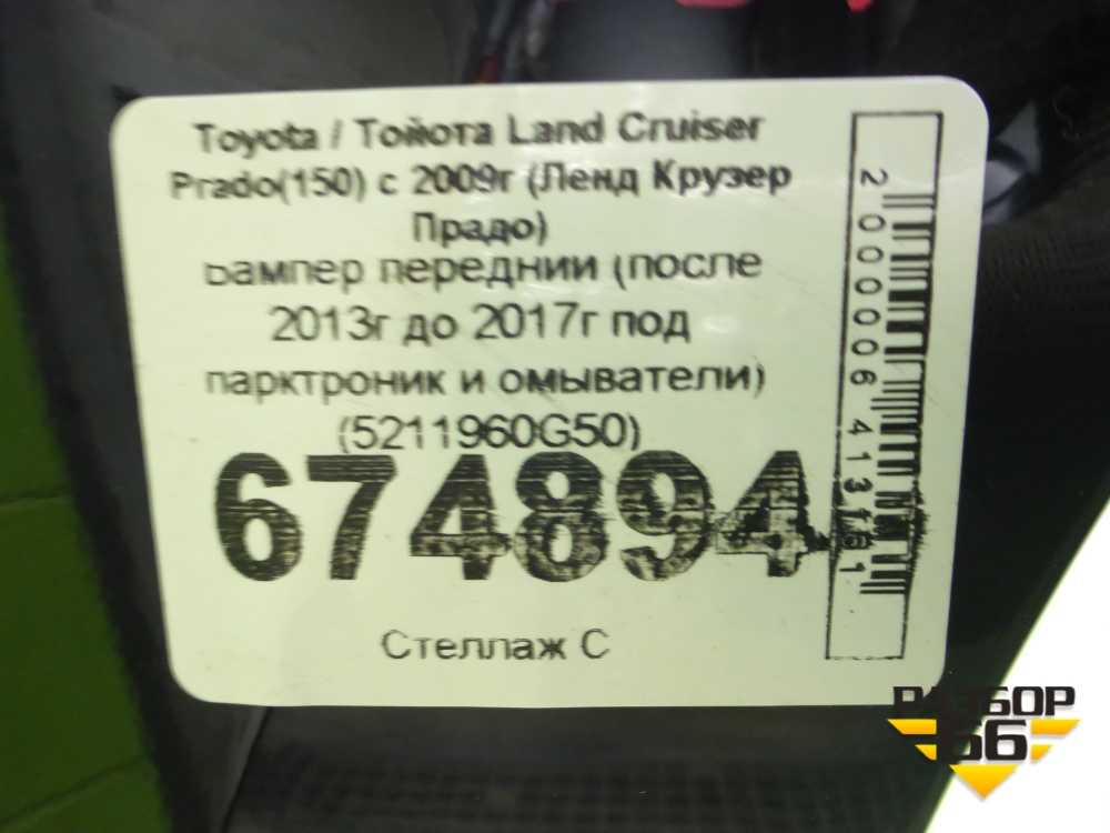 Бампер передний (после 2013г до 2017г под парктроник и омыватели) (5211960G50) для Toyota Land Cruiser Prado(150) с 2009г (Ленд Крузер Прадо) в Уфе