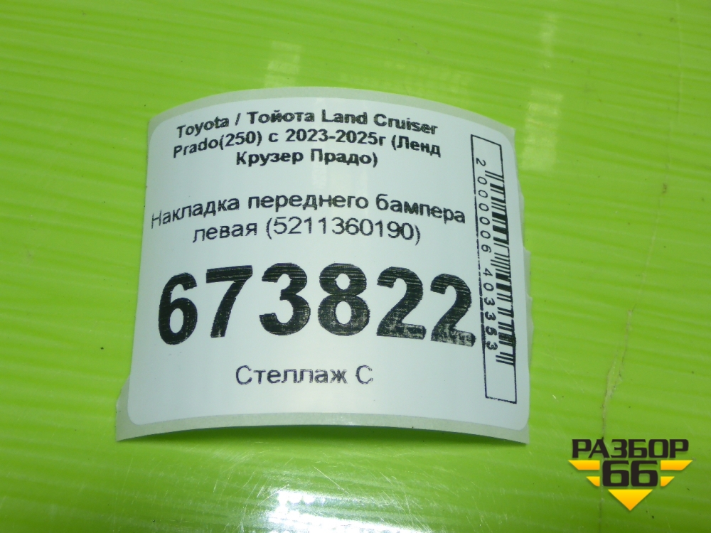 Накладка переднего бампера левая (5211360190) для Toyota Land Cruiser Prado(250) с 2023-2025г (Ленд Крузер Прадо) в Уфе