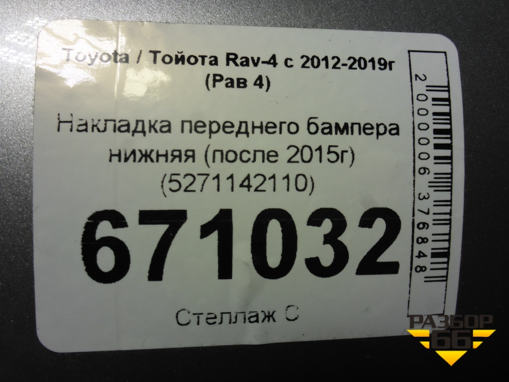 Накладка переднего бампера нижняя (после 2015г) (5271142110) для Toyota Rav-4 с 2012-2019г (Рав 4) в Уфе