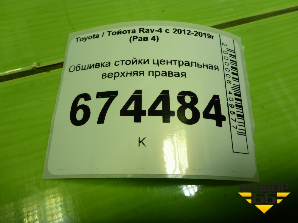 Обшивка стойки центральная верхняя правая (6241042070) для Toyota Rav-4 с 2012-2019г (Рав 4) в Уфе