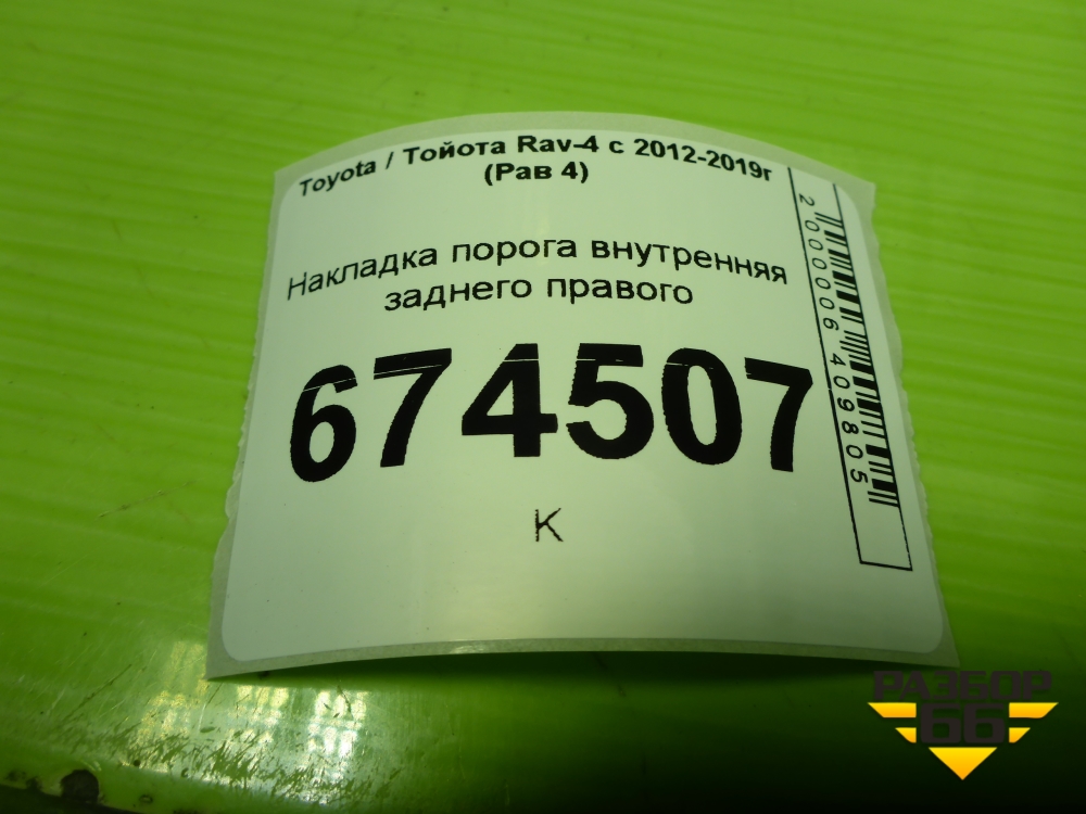 Накладка порога внутренняя заднего правого (6791742070) для Toyota Rav-4 с 2012-2019г (Рав 4) в Уфе
