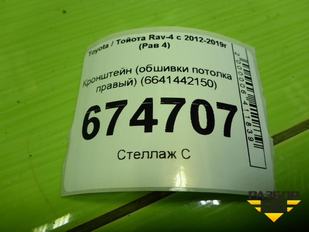 Кронштейн (обшивки потолка правый) (6641442150) для Toyota Rav-4 с 2012-2019г (Рав 4) в Уфе