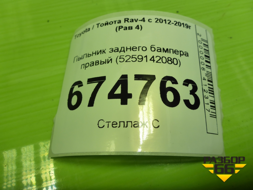 Пыльник заднего бампера правый (5259142080) для Toyota Rav-4 с 2012-2019г (Рав 4) в Уфе