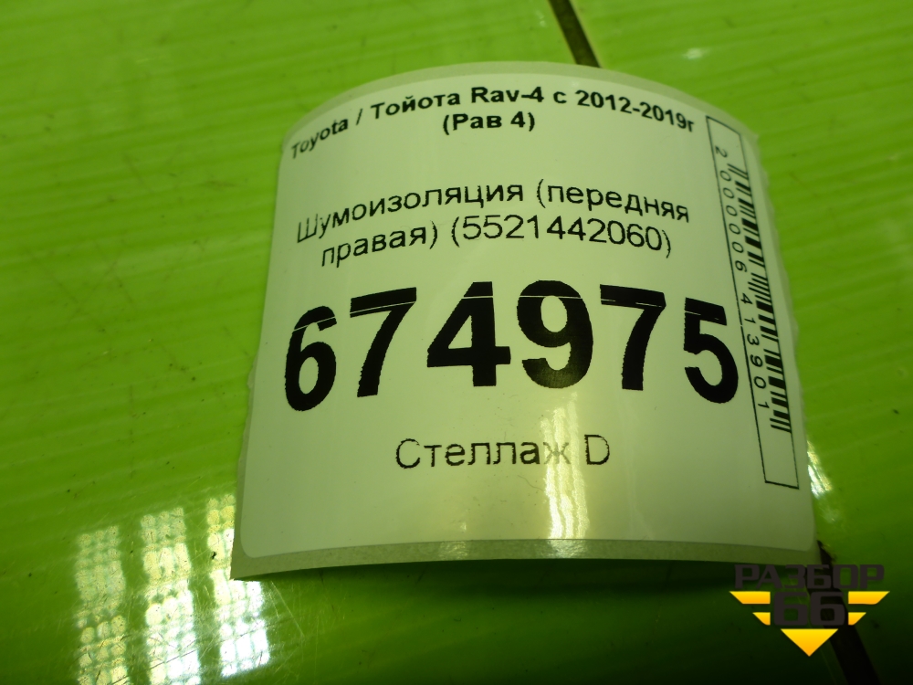 Шумоизоляция (передняя правая) (5521442060) для Toyota Rav-4 с 2012-2019г (Рав 4) в Уфе