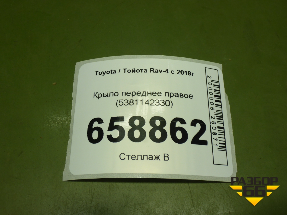 Крыло переднее правое (5381142330) для Toyota Rav-4 с 2018г (Рав 4) в Уфе
