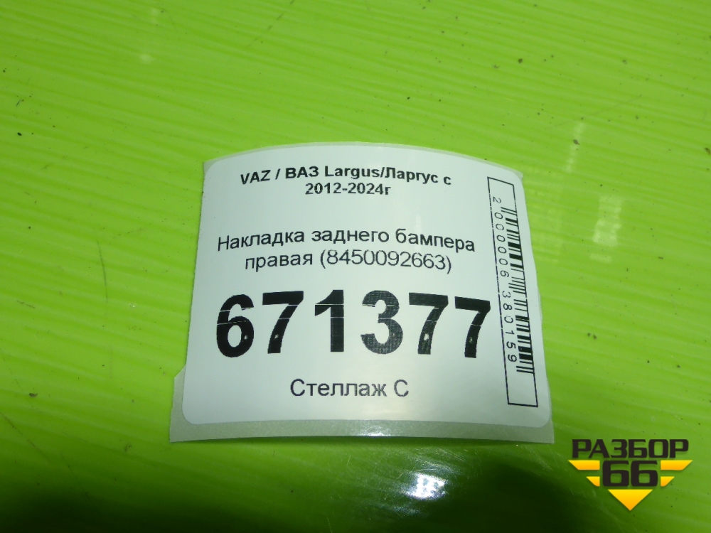 Накладка заднего бампера правая (8450092663) для VAZ Largus/Ларгус с 2012-2024г в Уфе