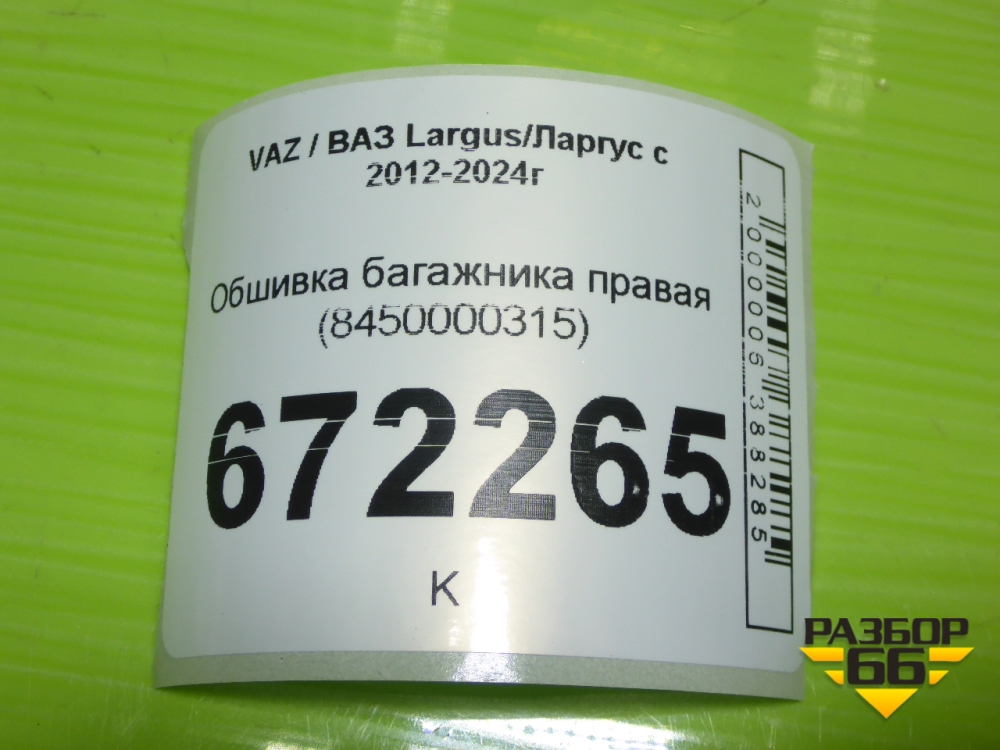 Обшивка багажника правая (8450000315) для VAZ Largus/Ларгус с 2012-2024г в Уфе