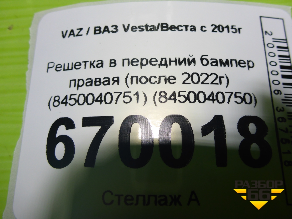 Решетка в передний бампер правая (после 2022г) (8450040750) для VAZ Vesta/Веста с 2015г в Уфе