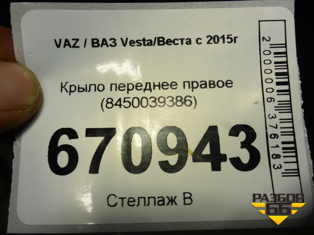 Крыло переднее правое (8450039386) для VAZ Vesta/Веста с 2015г в Уфе