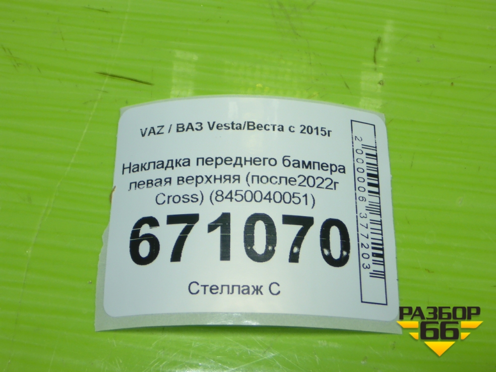 Накладка переднего бампера левая верхняя (после2022г Cross) (8450040051) для VAZ Vesta/Веста с 2015г в Уфе