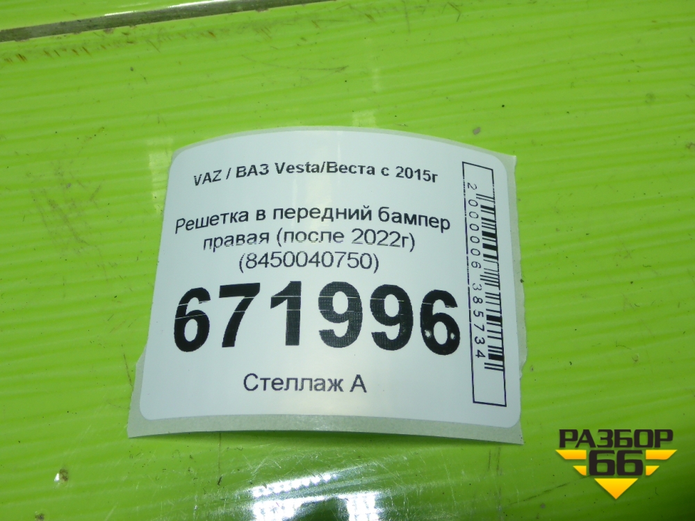 Решетка в передний бампер правая (после 2022г) (8450040750) для VAZ Vesta/Веста с 2015г в Уфе