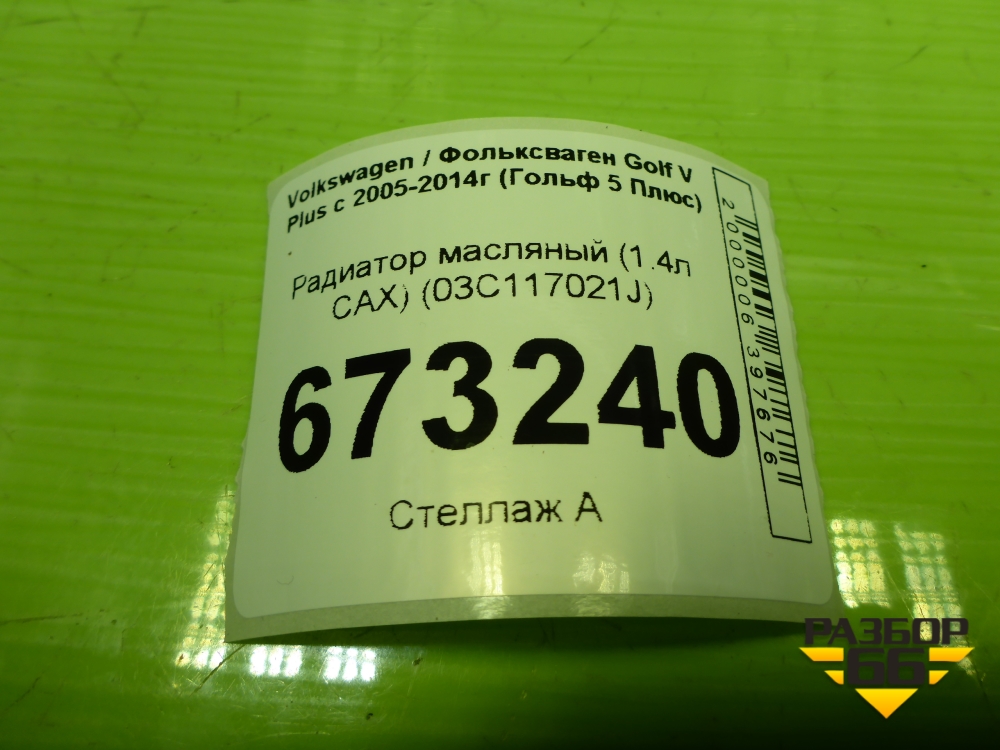 Радиатор масляный (1.4л CAX) (03C117021J) для Volkswagen Golf V Plus с 2005-2014г (Гольф 5 Плюс) в Уфе