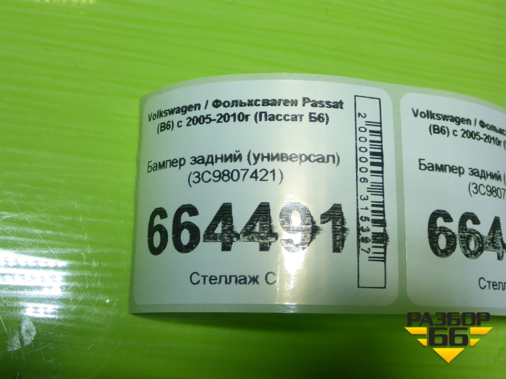 Бампер задний (универсал) (3C9807421) для Volkswagen Passat (B6) с 2005-2010г (Пассат Б6) в Уфе