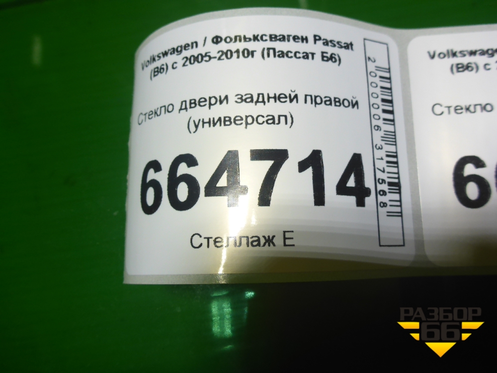 Стекло двери задней правой (универсал) для Volkswagen Passat (B6) с 2005-2010г (Пассат Б6) в Уфе