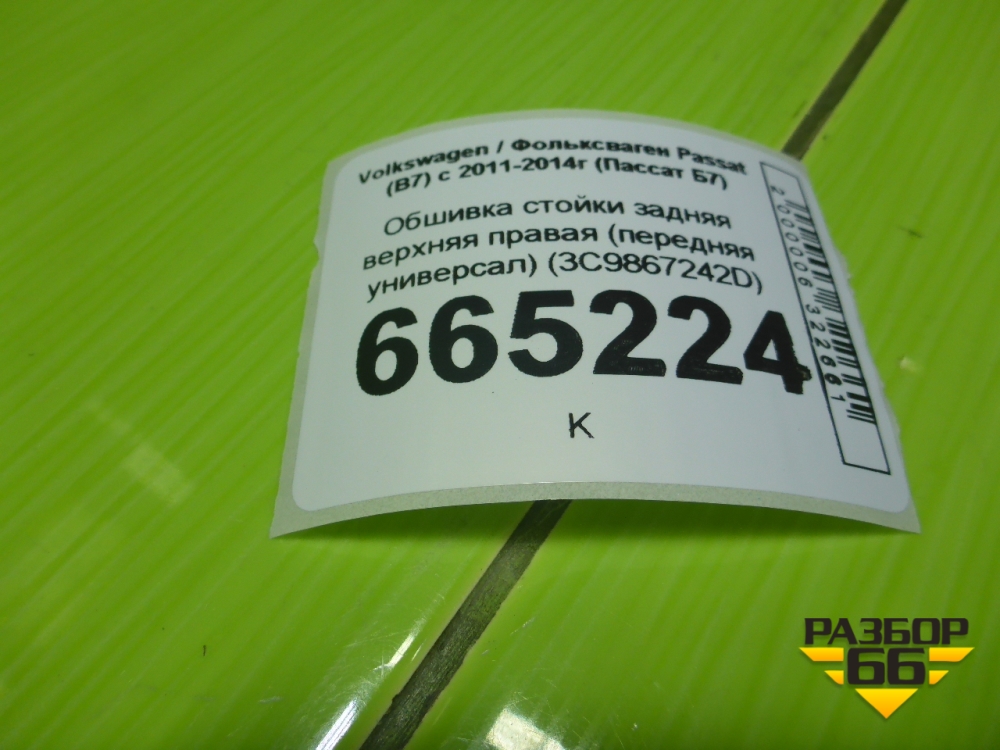 Обшивка стойки задняя верхняя правая (передняя универсал) (3C9867242D) для Volkswagen Passat (В7) с 2011-2014г (Пассат Б7) в Уфе