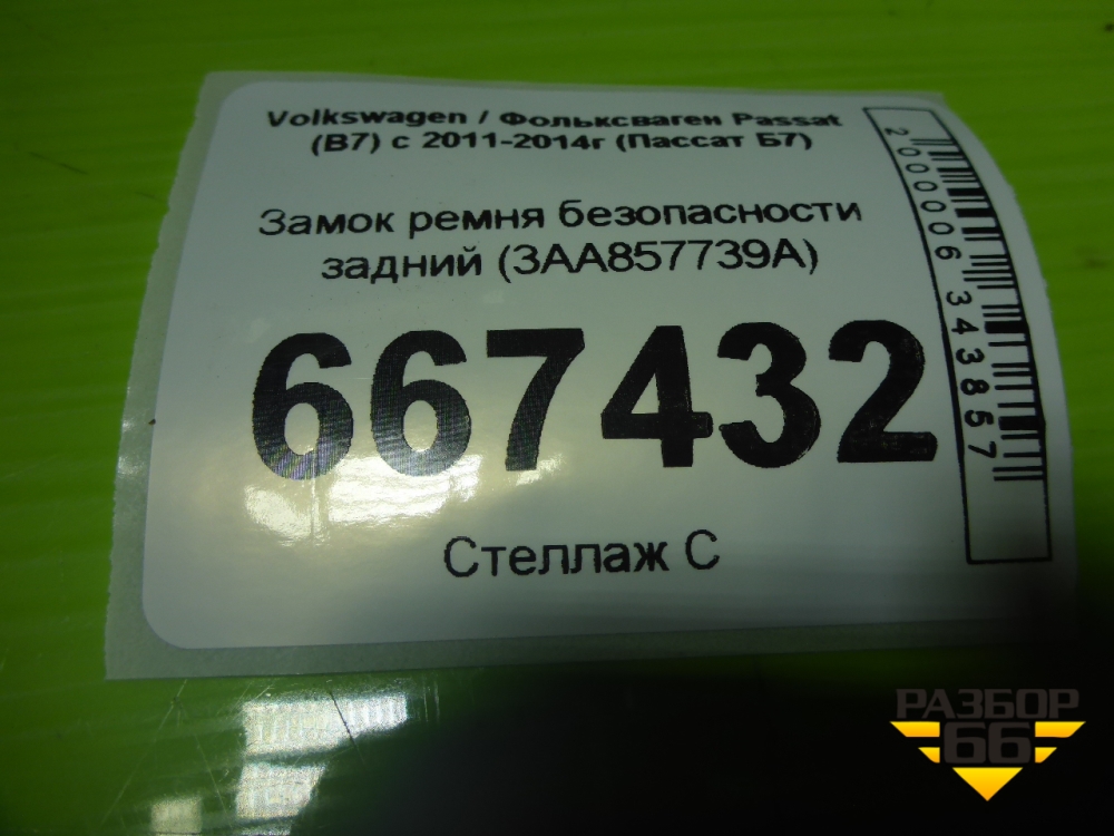 Замок ремня безопасности задний (3AA857739A) для Volkswagen Passat (В7) с 2011-2014г (Пассат Б7) в Уфе