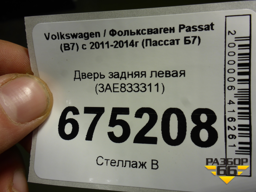 Дверь задняя левая (3AE833311) для Volkswagen Passat (В7) с 2011-2014г (Пассат Б7) в Уфе