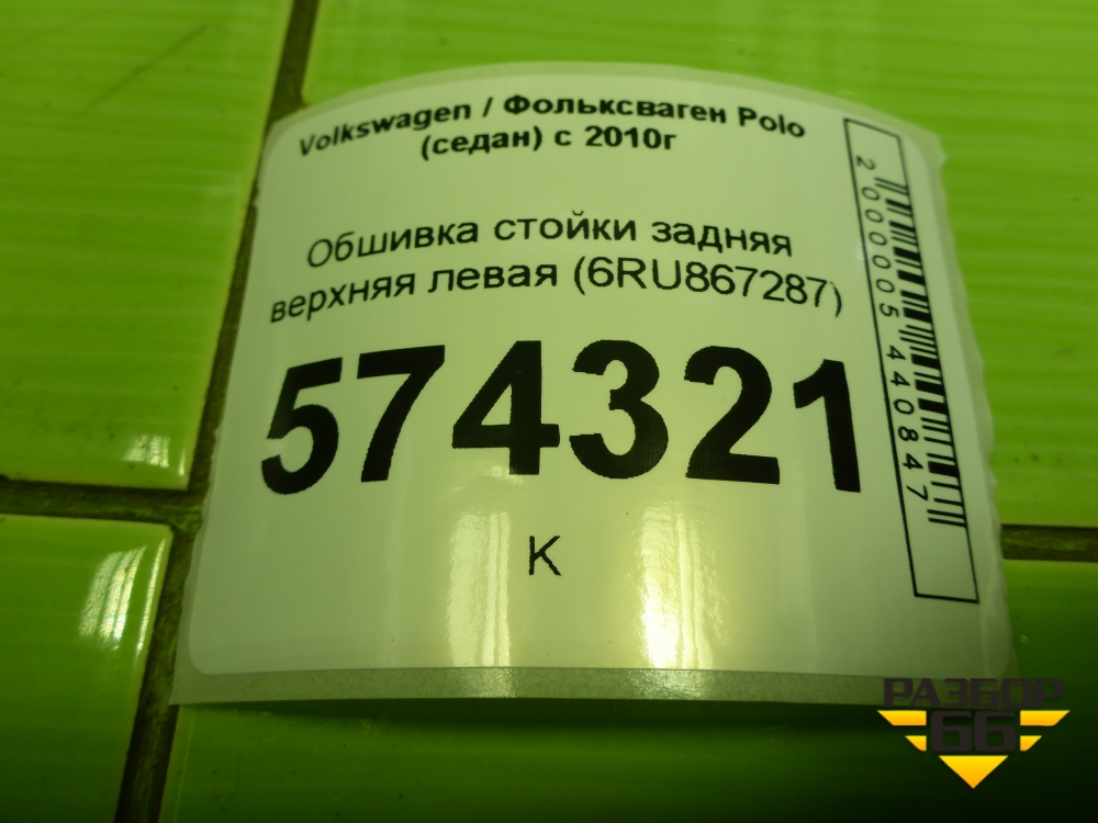 Обшивка стойки задняя верхняя левая (6RU867287) для Volkswagen Polo (седан) с 2010г (Поло) в Уфе
