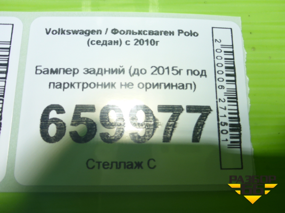 Бампер задний (до 2015г под парктроник не оригинал) для Volkswagen Polo (седан) с 2010г (Поло) в Уфе