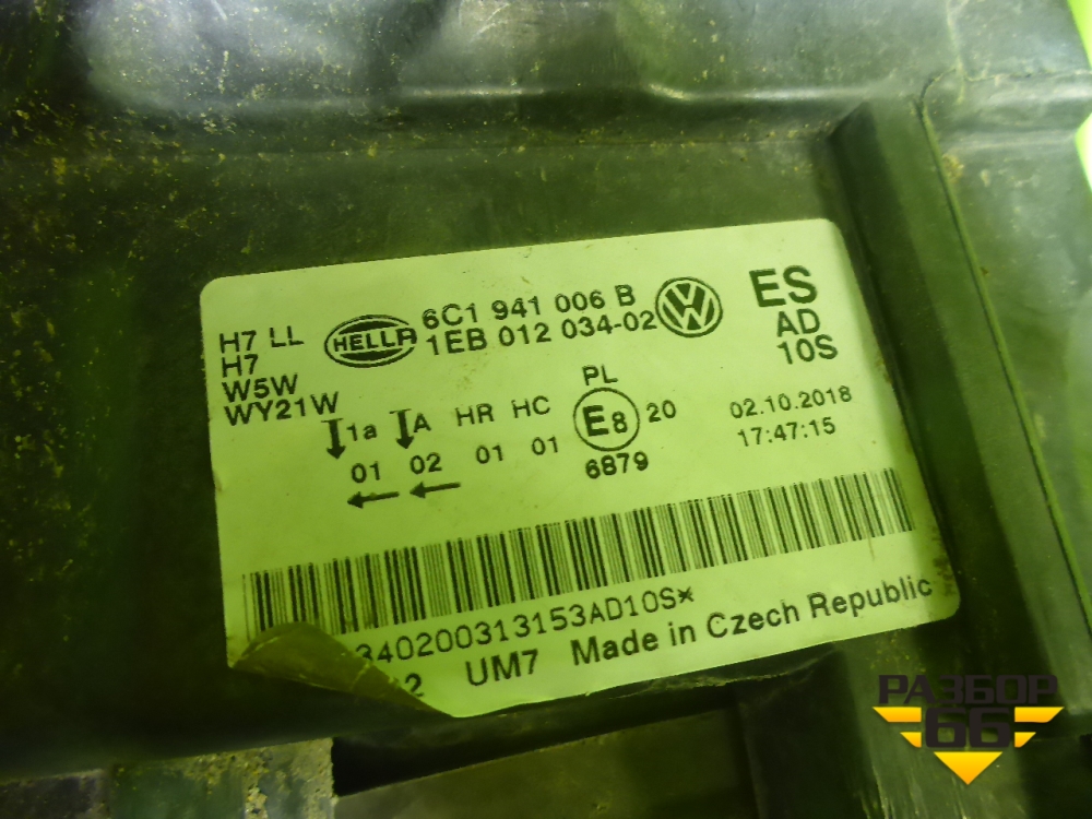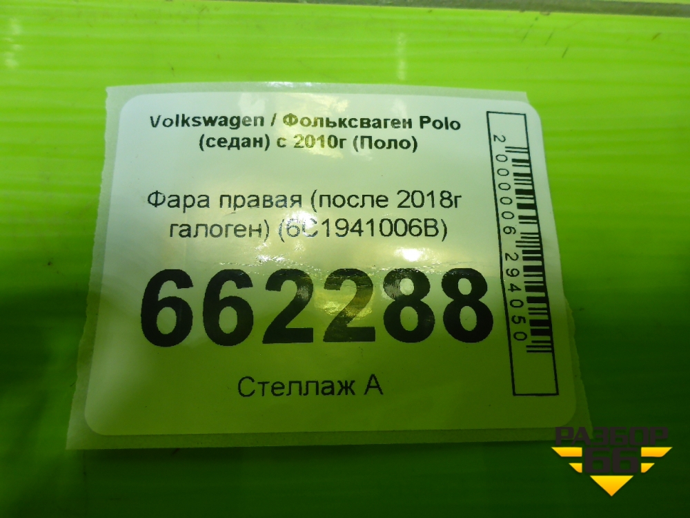 Фара правая (после 2018г галоген) (6C1941006B) для Volkswagen Polo (седан) с 2010г (Поло) в Уфе