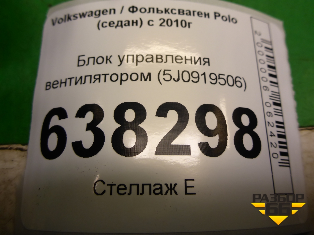 Блок управления вентилятором (5J0919506) для Volkswagen Polo (седан) с 2010г (Поло) в Уфе