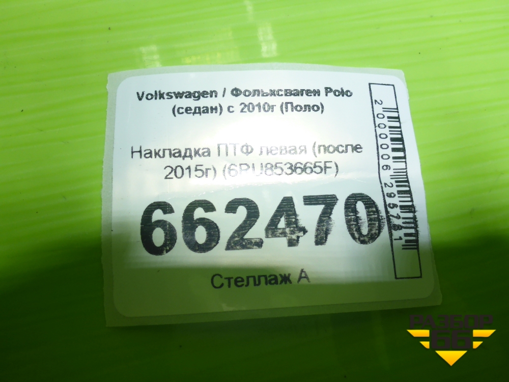 Накладка ПТФ левая (после 2015г) (6RU853665F) для Volkswagen Polo (седан) с 2010г (Поло) в Уфе